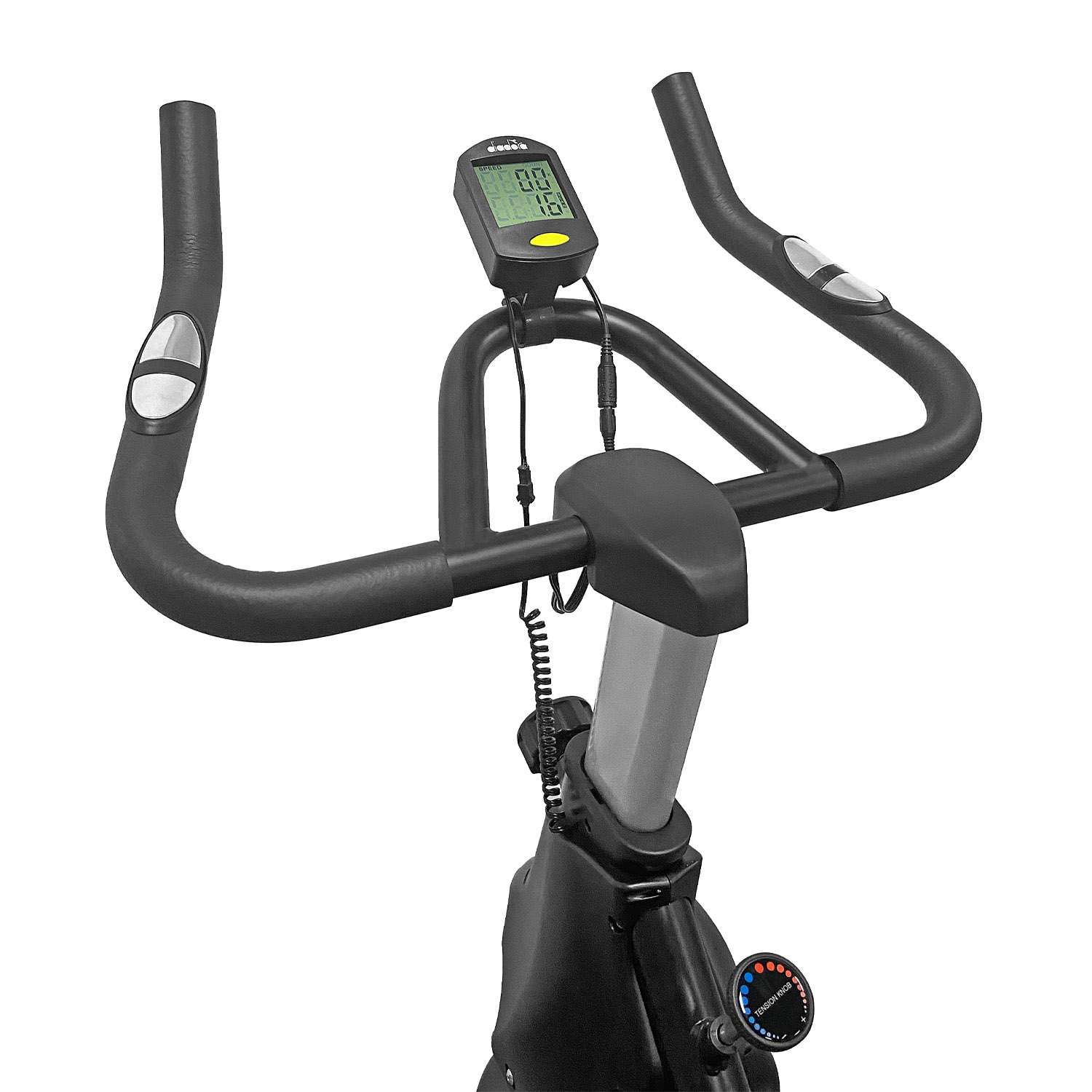 Con un volano da 18 kg e pignone fisso, offre una pedalata fluida e realistica. Dotata di un computer che monitora tempo, velocità, distanza, calorie bruciate e pulsazioni, è ideale per tenere traccia dei progressi.