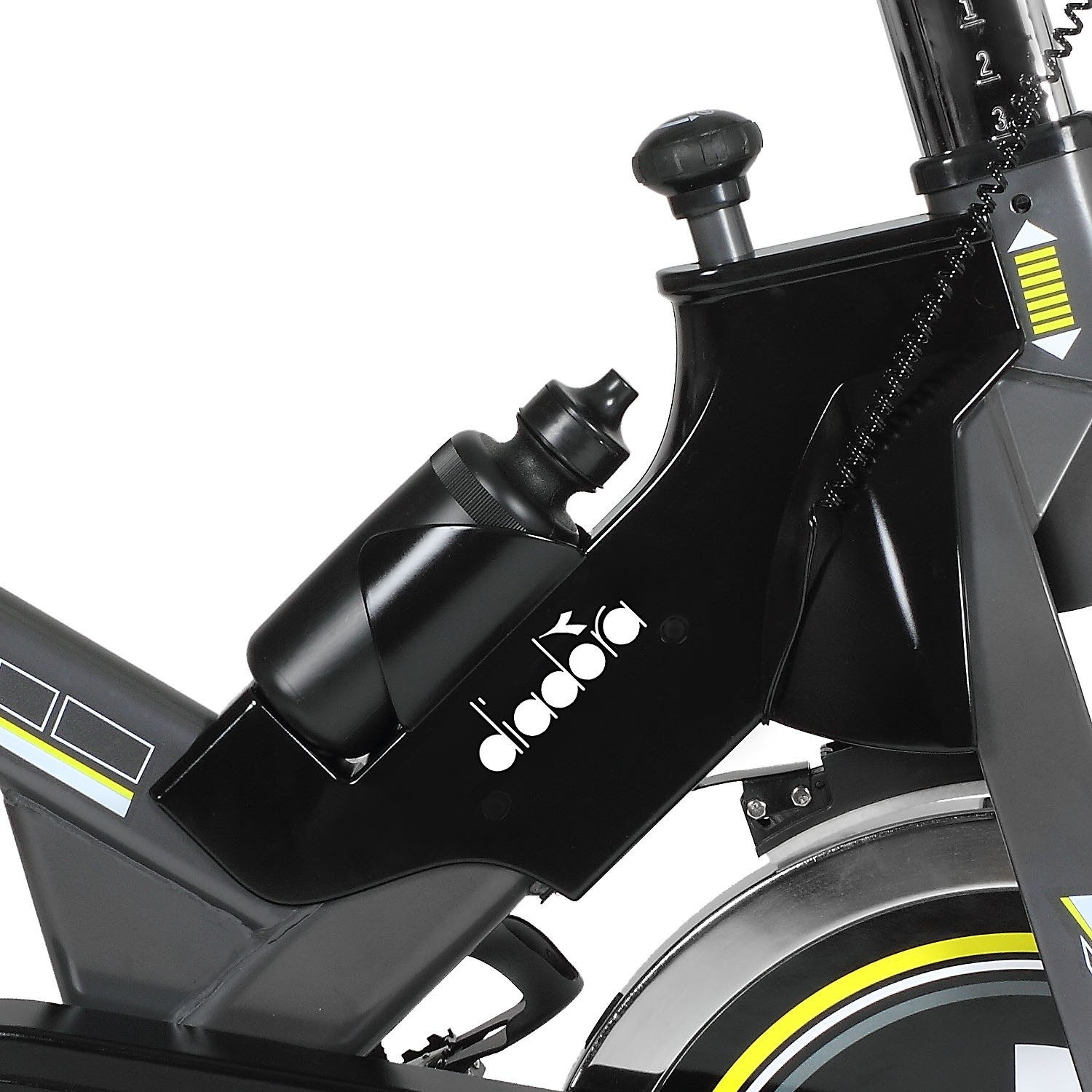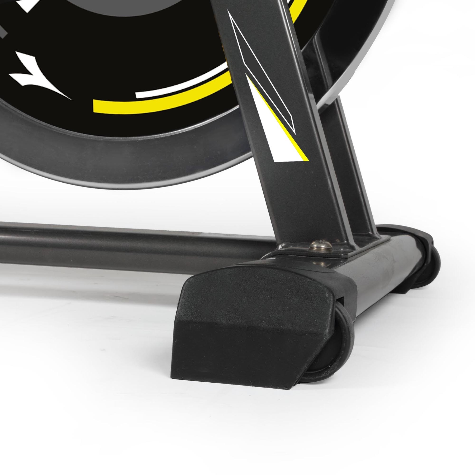 Il volano da 23 kg garantisce inerzia corposa e rotazione stabile: partenze progressive, cadenza uniforme, sensazione “strada” nei rilanci. Con pignone fisso e trasmissione a catena ottieni risposta diretta ai cambi di ritmo, perfetta per lavori di forza e SFR. Il freno a pattino con resistenza a tampone è immediato: micro-scatti precisi per trovare la zona giusta senza “salti” d’intensità. La pedivella a 3 pezzi e i pedali racing bilanciati trasferiscono la potenza con solidità; i piedini di livellamento mantengono l’appoggio stabile anche su pavimenti irregolari. È la base tecnica che serve per interval credibili in casa: volano pesante, trasmissione reattiva e modulazione fine della resistenza per stimoli efficaci a ogni seduta, dal riscaldamento agli sprint.
