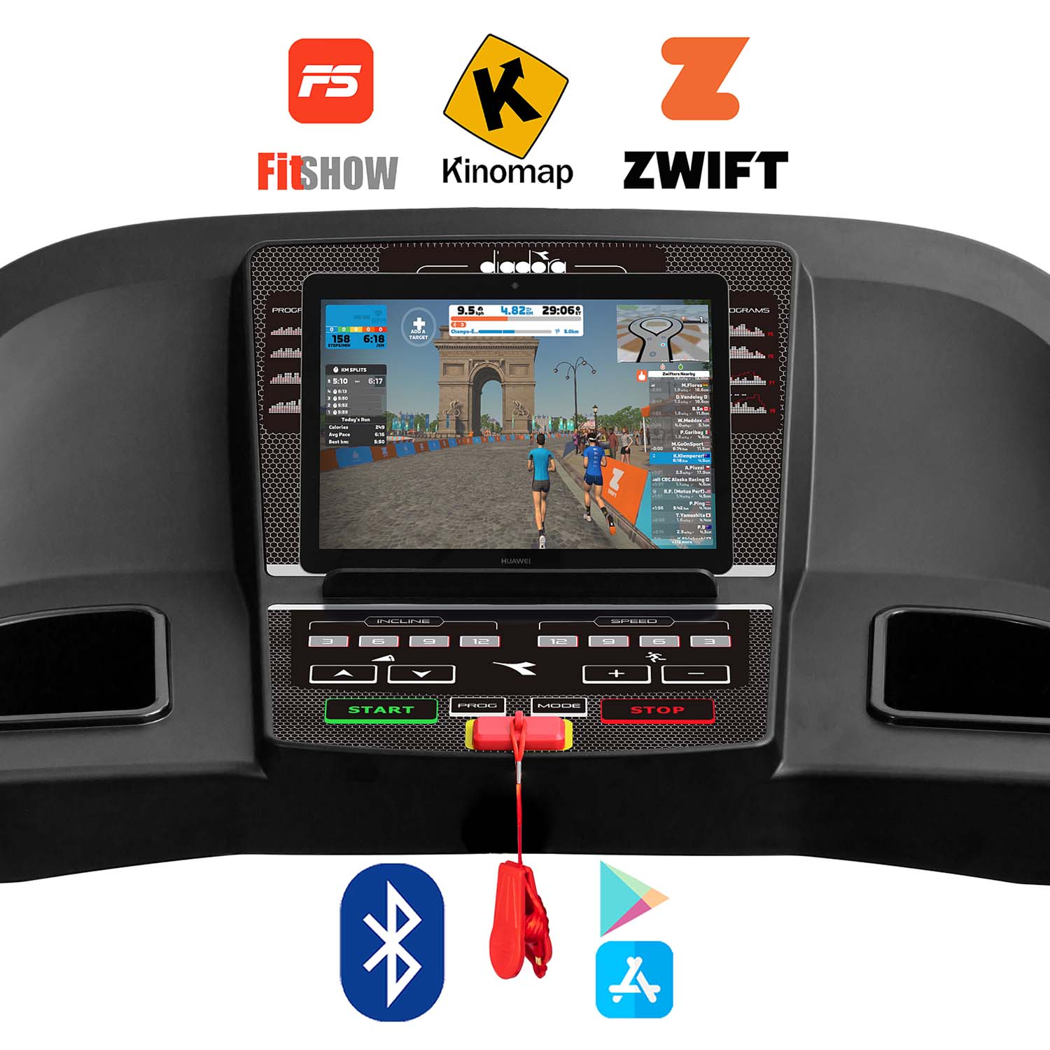 Il tapis roulant Diadora EDGE 7.7 è un dispositivo di alta qualità progettato per gli appassionati di fitness che cercano un allenamento efficace e versatile direttamente a casa. Questo tapis roulant offre una combinazione di potenza, versatilità e tecnologia avanzata, rendendolo perfetto per ogni tipo di atleta, dai principianti ai più esperti. È dotato di un motore potente da 3 HP che consente di raggiungere una velocità massima di 20 km/h, ideale per allenamenti intensi e sessioni di corsa veloce. La superficie di corsa ampia e confortevole, un display LCD chiaro e dettagliato, e un’inclinazione elettrica fino al 18% permettono di personalizzare ogni sessione di allenamento secondo le proprie esigenze. Inoltre, la compatibilità con le app FitShow, Kinomap e Zwift, e la connettività Bluetooth, offrono un’esperienza di allenamento interattiva e coinvolgente. Con 71 programmi di allenamento disponibili, speakers integrati per ascoltare la tua musica preferita, un sistema di rilevazione cardiaca hand pulse e una struttura robusta in grado di supportare fino a 130 kg, il Diadora EDGE 7.7 è la scelta perfetta per chi vuole migliorare la propria forma fisica comodamente a casa.