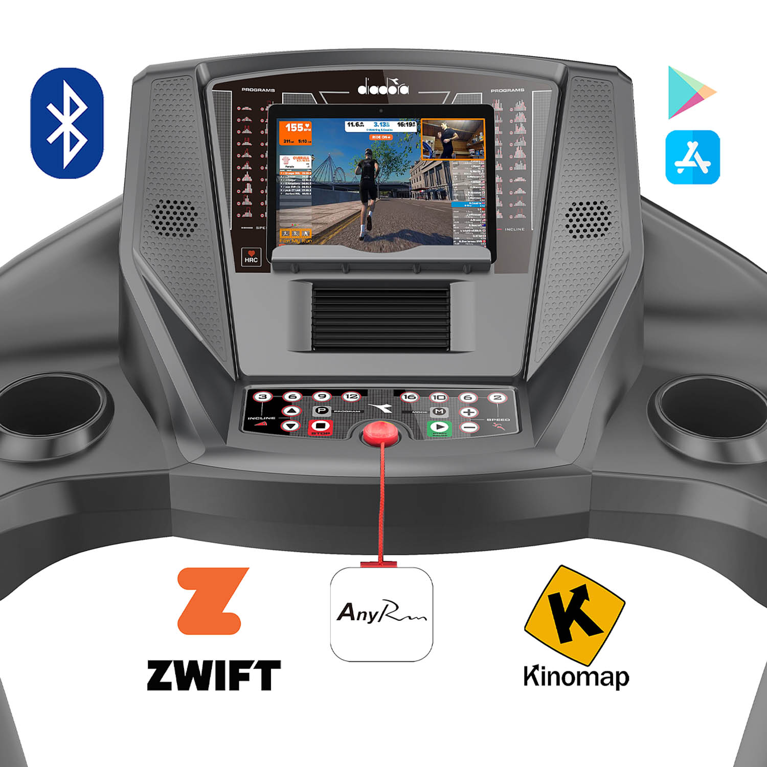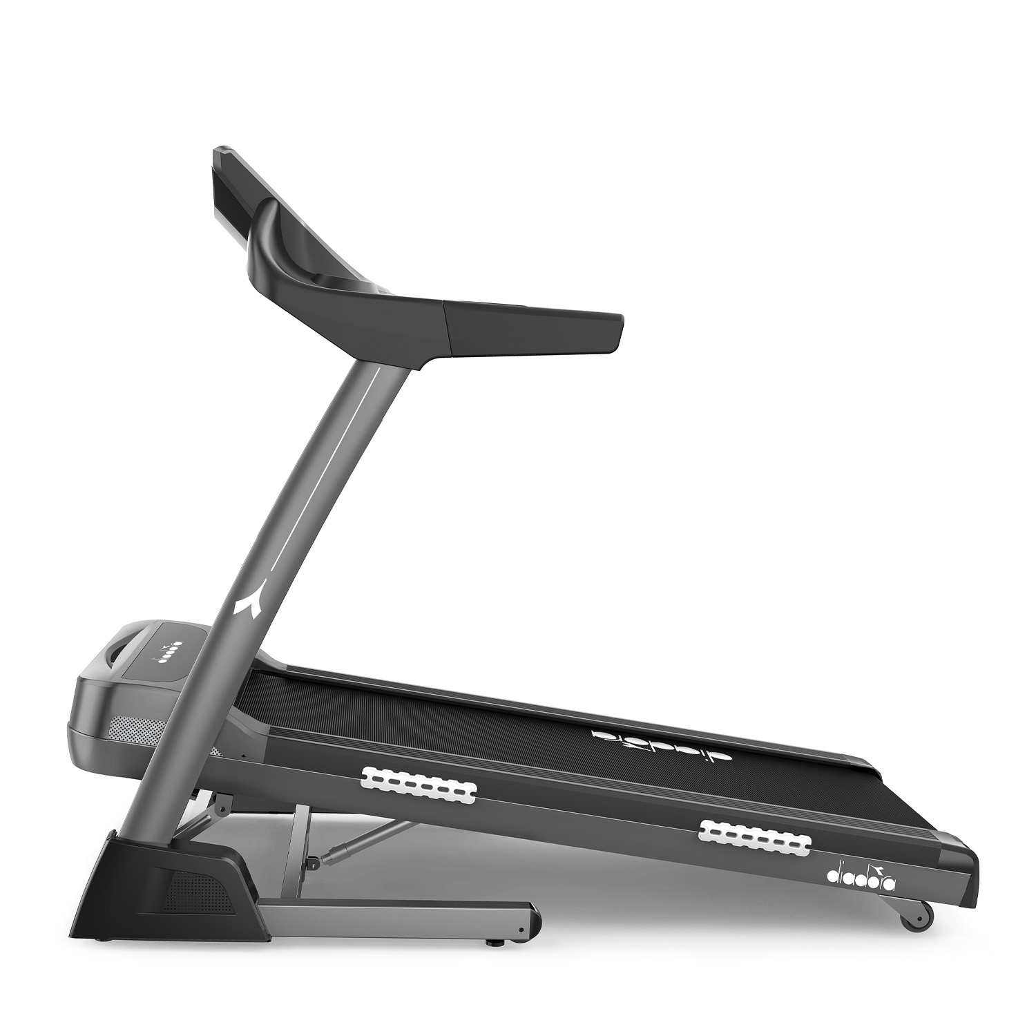 Il tapis roulant Diadora Runner 11.7 è progettato per offrire prestazioni elevate e personalizzate per ogni tipo di utente. Con una superficie di corsa di 53 x 140 cm e un motore potente da 3,5 HP, raggiunge una velocità massima di 22 km/h ed è dotato di inclinazione elettrica regolabile fino al 15%. Questo modello include un display LCD retroilluminato da 15 x 9 cm per monitorare velocità, distanza e calorie bruciate. I 45 programmi di allenamento offrono una grande varietà, con opzioni HRC per il controllo della frequenza cardiaca e compatibilità con app come AnyRun, Kinomap e Zwift. È dotato di Bluetooth e ammortizzazione con 6 elastomeri per proteggere le articolazioni. Pieghevole e servoassistito, supporta un peso massimo di 140 kg ed è facile da riporre grazie alle ruote di trasporto. La garanzia completa ne conferma l’affidabilità per l’allenamento a casa.