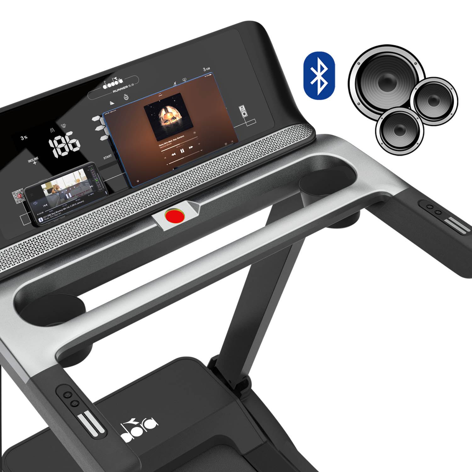 Grazie ai 20 livelli di inclinazione elettrica, puoi modulare l’intensità delle sessioni e simulare percorsi in salita. Il sistema di ammortizzazione con 8 elastomeri double deck riduce l’impatto su articolazioni e muscoli, offrendo comfort e sicurezza. La connettività Bluetooth, il supporto tablet e gli speaker integrati per MP3 arricchiscono l’esperienza, mentre la compatibilità con app come FitShow, Kinomap e Zwift rende ogni allenamento più interattivo e stimolante.